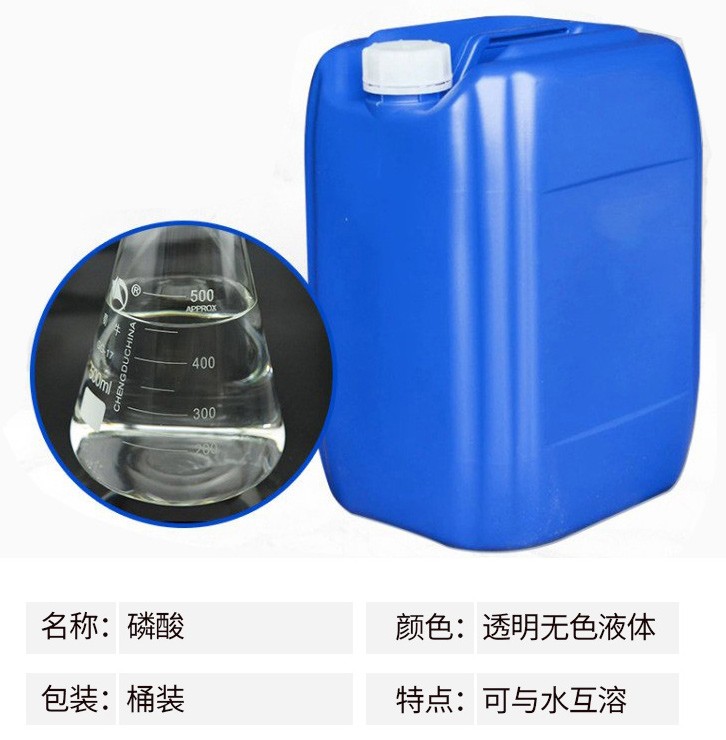 熔點42.35℃,比重1.70,高沸點酸,可與水以任意比互溶,沸點213℃時(失去1/2水),則生成焦磷酸。加熱至300℃時變成偏磷酸。相對密Chemicalbook度181.834。易溶于水,溶于乙醇。磷酸是一種常見的無機酸,是中強酸。其酸性較硫酸、鹽酸和硝酸等強酸弱,但較醋酸、硼酸、碳酸等弱酸強。磷酸與碳酸鈉反應(yīng)時在不同的pH下,可生成不同的酸式鹽。能刺激皮膚引起發(fā)炎,破壞肌體組織。濃磷酸在瓷器中加熱時有侵蝕作用。有吸濕性,密封保存。磷酸主要應(yīng)用領(lǐng)域如下:金屬表面鋼管磷化處理,配制電解拋光液和化學(xué)拋光液;鋁制品的拋光;制造各種磷酸鹽、飼料級磷酸氫鈣、酸式磷酸錳、焦磷酸鉀;醫(yī)藥工業(yè)用于制造甘油磷酸鈉、磷酸鐵,制造青霉素時調(diào)節(jié)酸堿度;用于制造磷酸鋅作為牙科補牙時粘合劑;塑料用于酚醛樹脂縮合的催化劑Chemicalbook;染料及中間體生產(chǎn)用的干燥劑;印刷用于配制揩去膠印彩印版上污點的清洗劑;火柴用于浸漬火柴梗,能使燃燒過的火柴梗不成灰而成炭狀,使用時較為安全;冶金用于生產(chǎn)耐火泥,提高煉鋼爐壽命;橡膠用于漿料的凝固劑及生產(chǎn)無機粘結(jié)劑的原料;涂料用于金屬防銹漆;食品工業(yè)用作酸性調(diào)味劑。